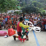 国内、途上国の児童養護施設、被災地、貧困に関する子供施設、病院などの子どもたちに笑顔を届ける活動です。